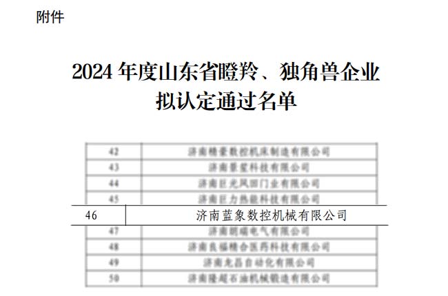 近日,省工業(yè)和信息化廳公示了《2024年度山東省瞪羚企業(yè)擬認(rèn)定通過名單》,藍(lán)象數(shù)控成功入選。