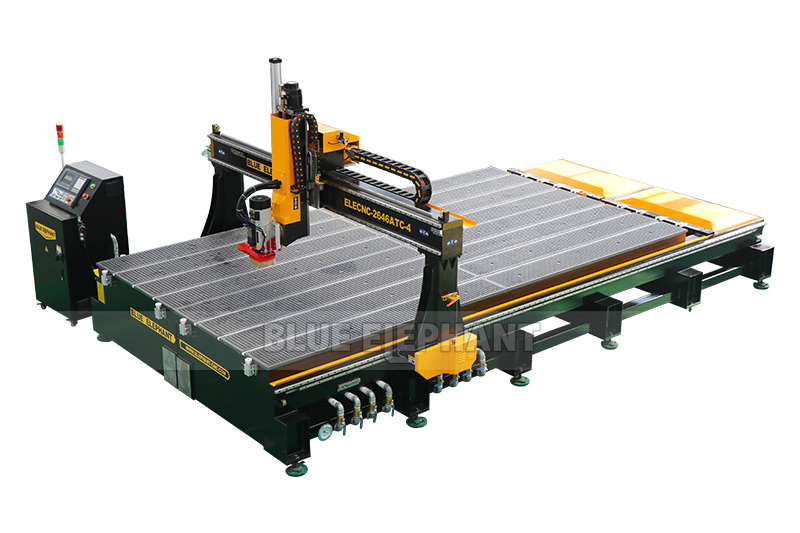 真四軸直排自動(dòng)換刀,8刀庫(kù)位設(shè)置,直排刀庫(kù)高度下降100mm。