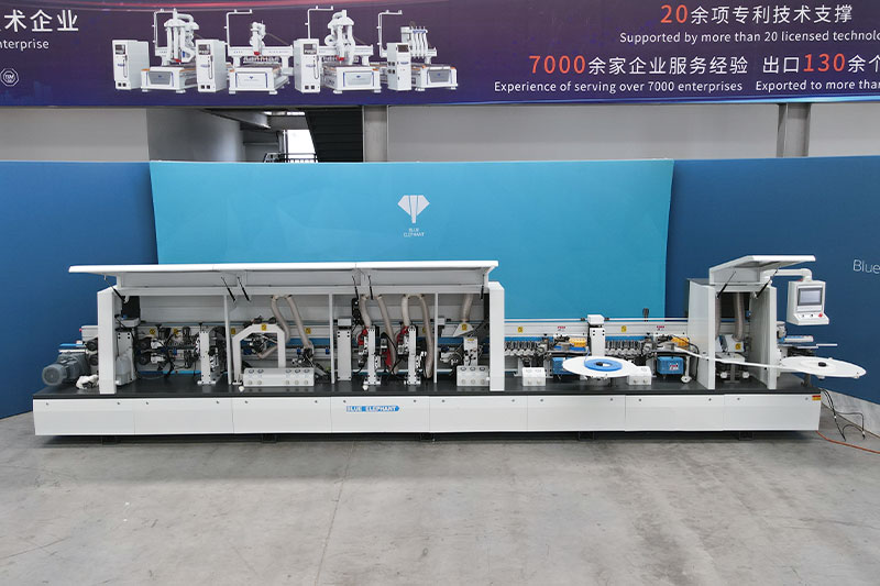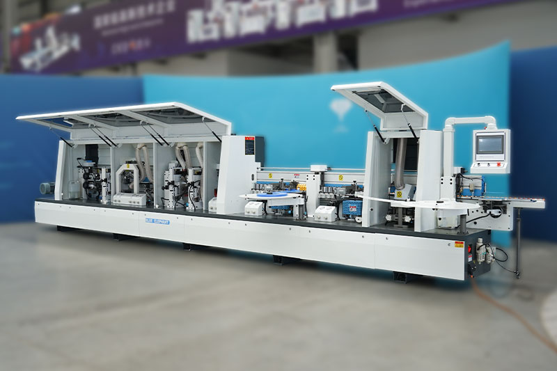 主要功能:預(yù)銑-涂膠貼邊1-六輪壓貼-烤燈1-涂膠貼邊2-六輪壓貼-烤燈2-前后齊頭-精修1-精修2-跟蹤修邊-氣動刮邊-平刮-氣動拋光1-氣動拋光2-屏幕一鍵控制前后清洗。