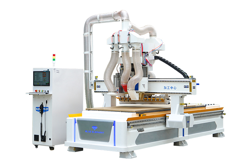 采用HQD自動(dòng)換刀主軸和大容量刀庫(kù),可以解決各種復(fù)雜生產(chǎn)工序,同時(shí)機(jī)器還配置了排鉆組和鋸片主軸,能夠解決板式家具三合一、二合一鏈接件所需安裝孔及隱形件所需安裝槽。